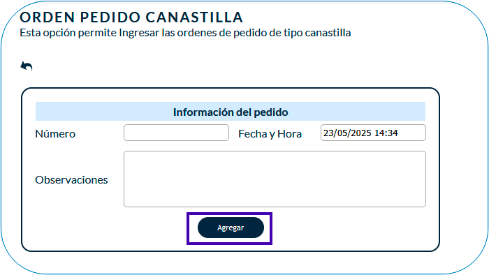 En esta opción se puede hacer el ingreso de órdenes de pedido canastilla a las cuales les